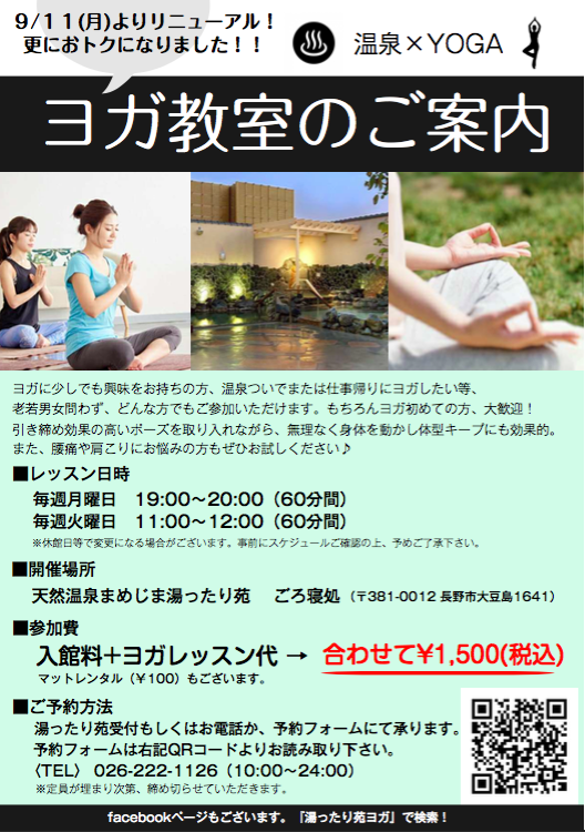 9/11(月)より ”まめじま湯ったり苑ヨガ”がリニューアルいたします☆