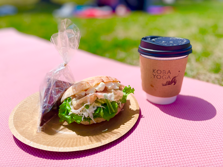 青空の下でヨガをして、その後は